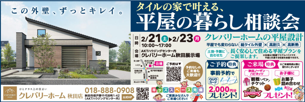 クレバリーホームの「総タイル外壁」と、人気の「平屋プラン」を体感いただける相談会を開催いたします!